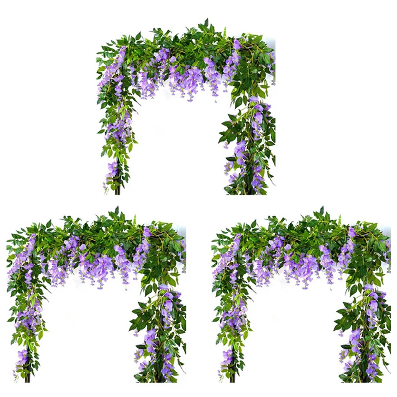 This set includes 6 pieces of 7ft artificial wisteria vine garlands in vibrant purple, perfect for decorating outdoor ceremonies, weddings, or special events. The realistic hanging flowers add elegance and charm to any space.