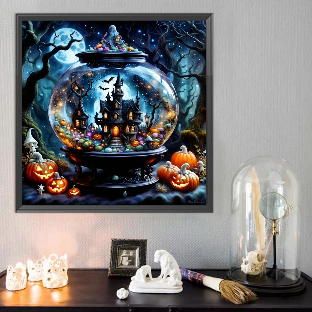 This Halloween DIY painting by numbers kit features a spooky skull and ghost design, perfect for seasonal home décor. Complete with oil paints on canvas, it’s a fun and creative project for beginners and experienced artists alike.